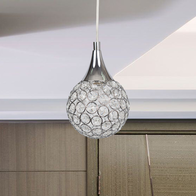 Make the most of artistic vibes with the fresh modern appeal of this chrome and clear finish pendant light. A charming round shade crafted from clear acrylic is treated to whimsical circles and a sleek chrome finish iron holder.
