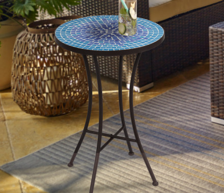 14" Mosaic Side Table, Blue Mini Cobble Pattern