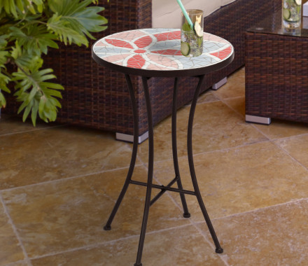 14" Mosaic Side Table, Floral Pattern