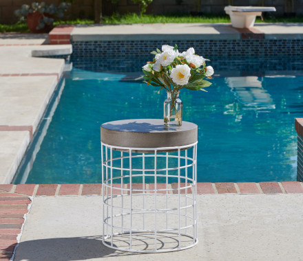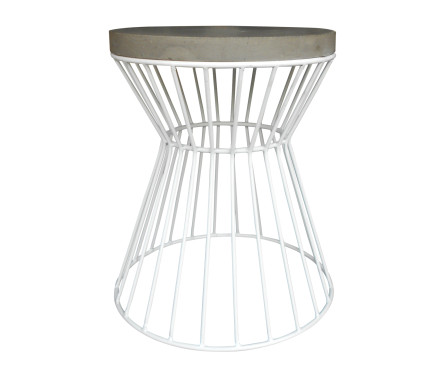 14" Outdoor Stool/Side Table, White Wire/Cement Surface