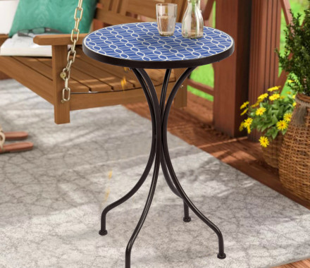 14" Round Mosaic Table,Blue & White Pattern