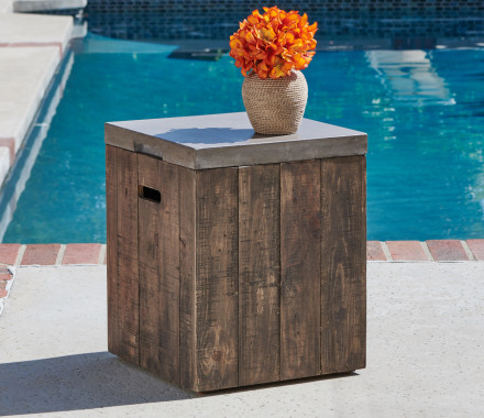 14" Outdoor Stool/Side Table, Grey Wash Finish
