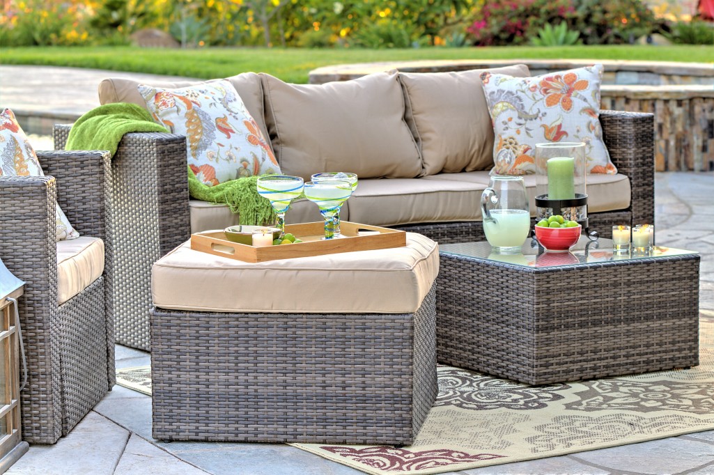 Transform your ordinary backyard into an elegant, resort-like sanctuary with the Caribe 4-piece patio set. Made from durable all-weather wicker wrapped around an aluminum frame, this collection can be arranged however you prefer. Ultra-thick, ultra-soft cushions create the perfect setting for cozying up with a book or spending time with your loved ones. A patio set designed to stand up to years of use.